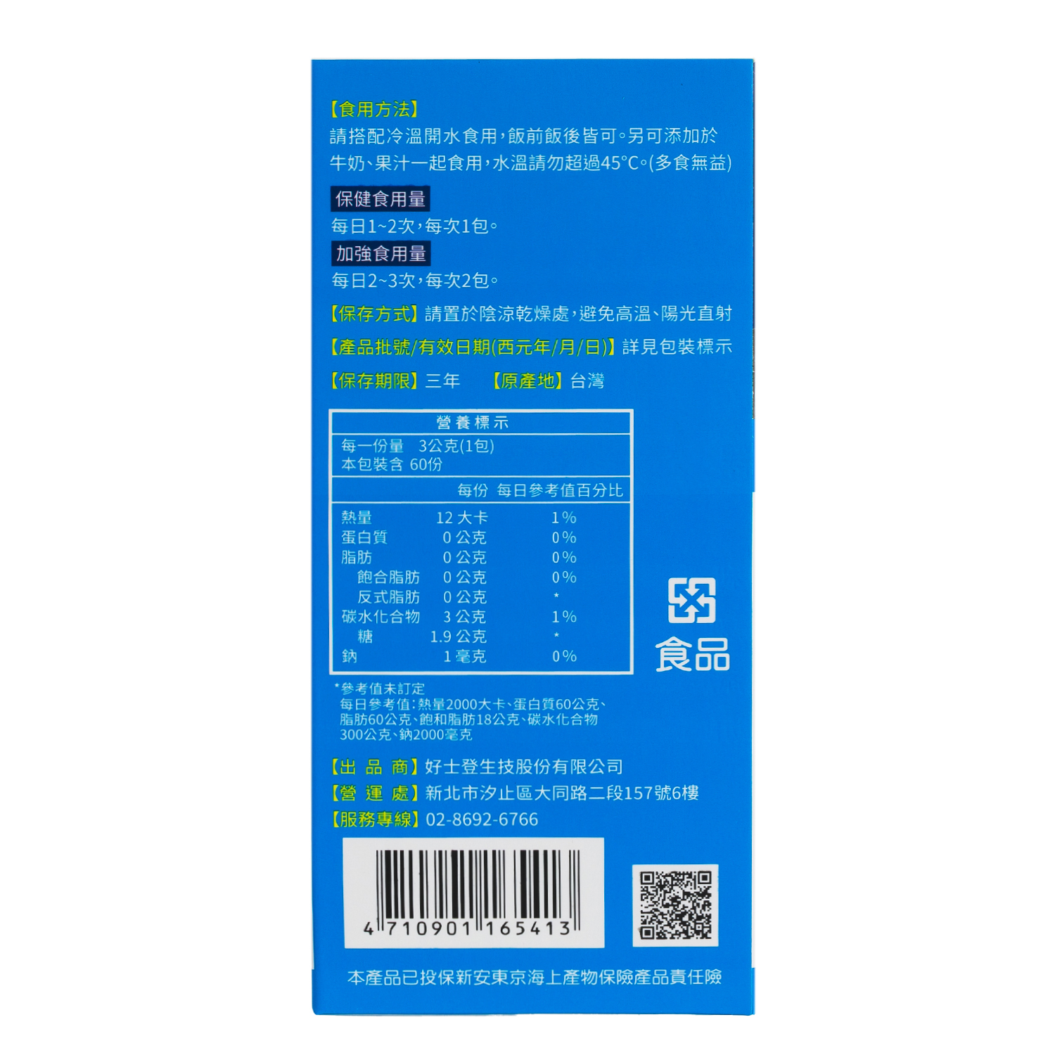 放置於陰涼處,易免受潮與陽光直射搭配冷溫開水食用,也可添加在果汁與牛奶,或與食物一起使用